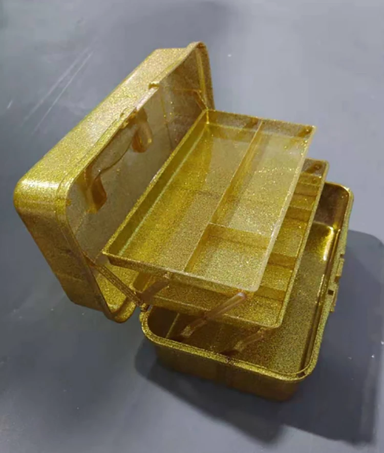 item | Multipurpose glitter plastic organizer and storage case three-layer tool box with tray |