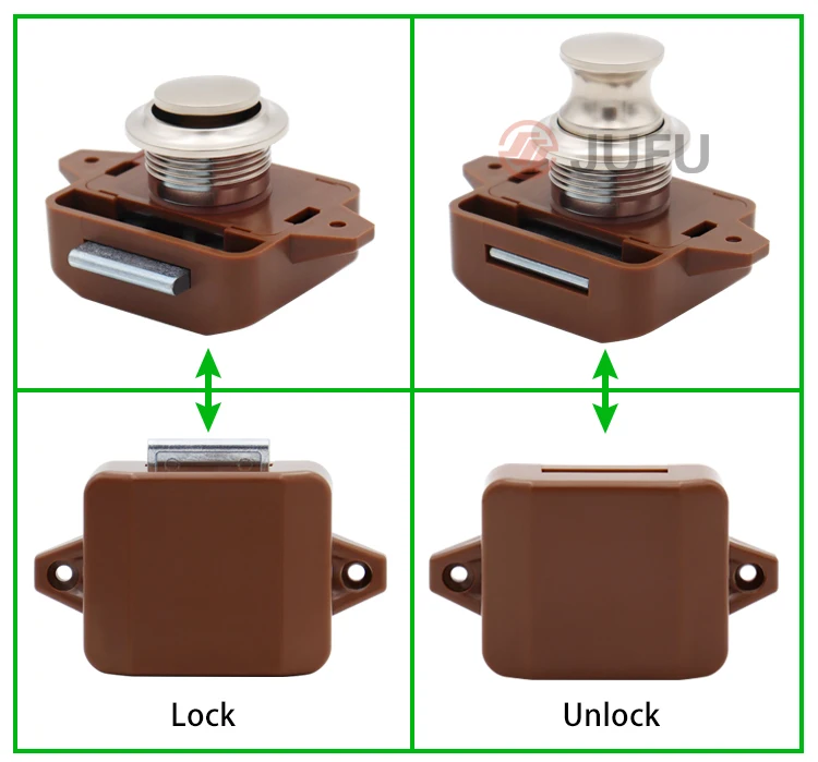 3. Key-less, press the button then can be locked, and door can be opened only by pressing the button and pulling the button. To hold your cupboard,cabinet,drawer and wardrobe door firmly shut, can also be used on drawers.