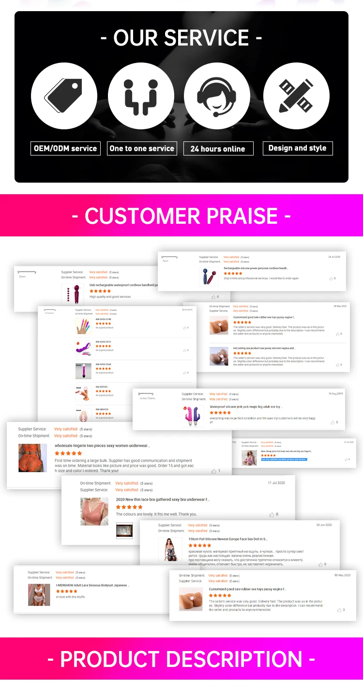 is a manufacturer focusing on adult products. supplying sex toys such as intelligent sex dolls, vibrations, masturbator cup, dildos, anal toy tec.we have owen advanced equipment and production line workshop, we guarantee high quality with reasonable price. specialized in design, development, production and marketing of sex toys, we strictly comply with the standards of ISO & ROHS, and follow the production concept of Eco-friendly and Non-toxic, skin-friendly. If you want to find a reliable manufacturer partner who can quickly develop new products and ensure products will always come from environmentally friendly materials to match international standards, we are the right one !