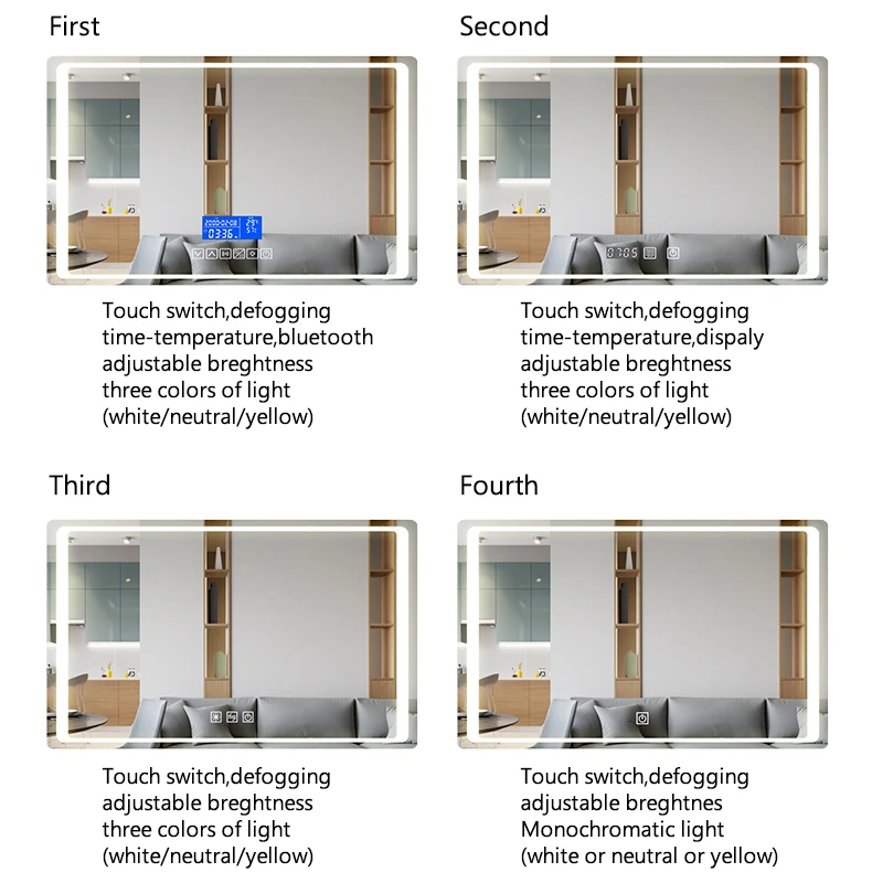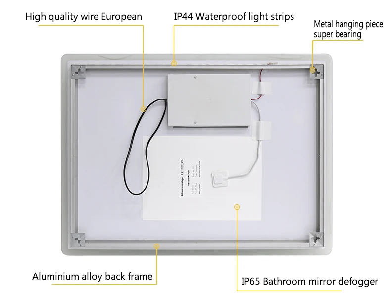 4mm silver mirror with waterproof LED light strips,with optional functional switch