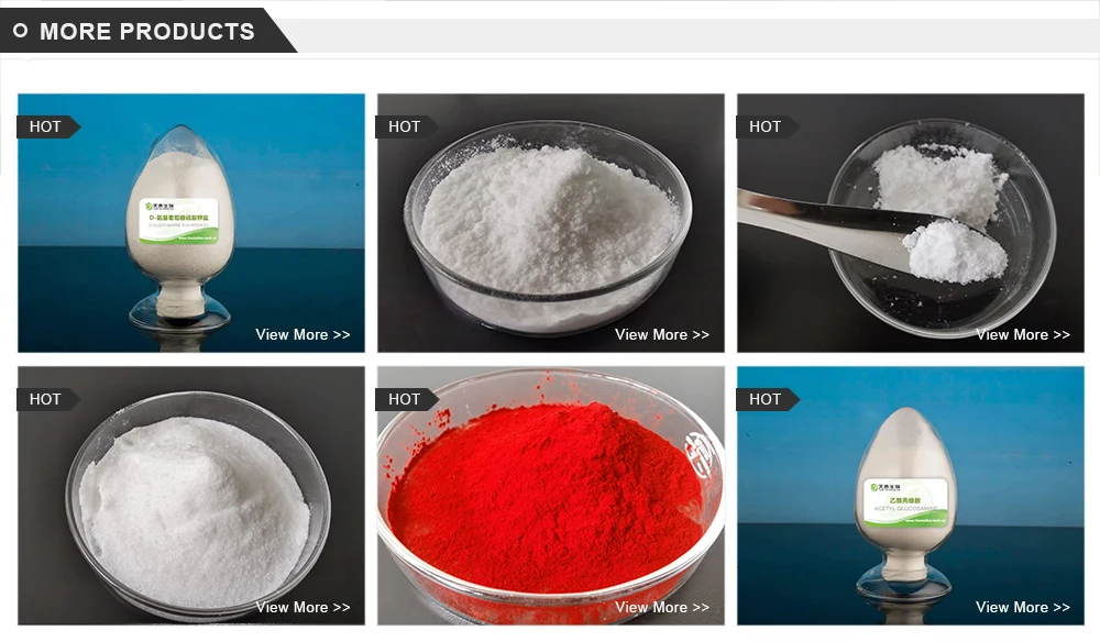 1.Are you factory or only company? We are a factory to produce all the products.N-Acetyl-D-Glucosamine.D-Glucosamine HCL.D-Glucosamine Sulfate 2KCL.D-Glucosamine Sulfate 2NaCL.