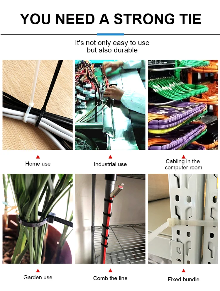 Nylon tie, a kind of tie made of nylon. Tie is also known as tie, lock and tie. According to the material, there are nylon tie, stainless steel tie and spray stainless steel tie.