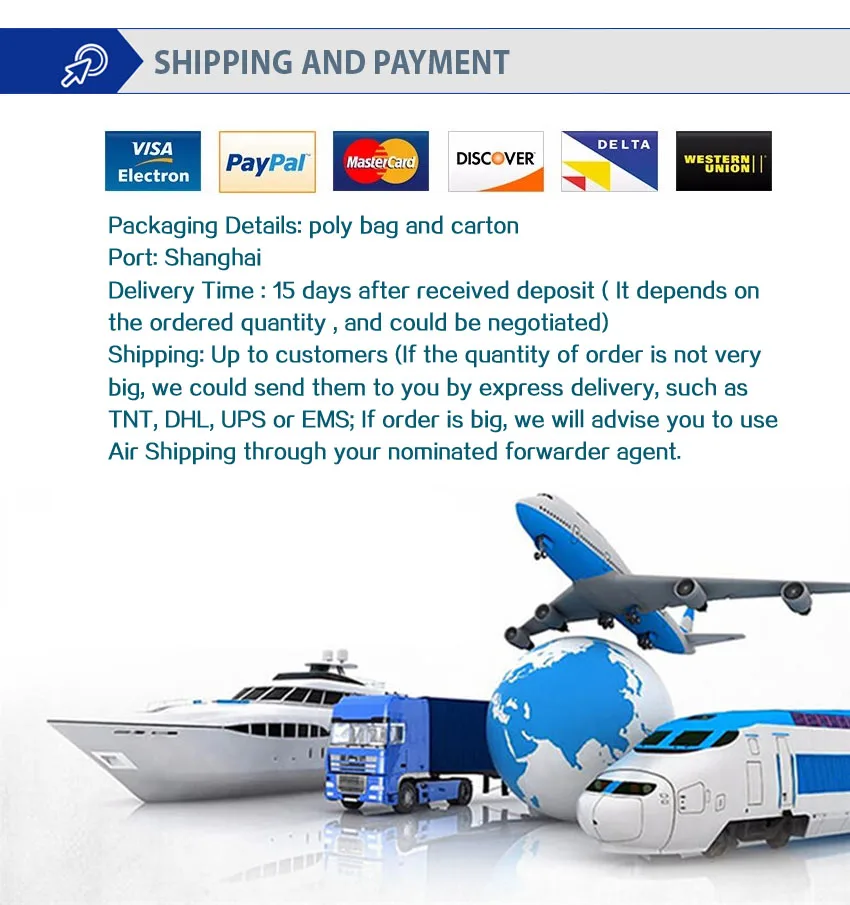 Accepted Payment Type: T/T,L/C,D/P D/A,MoneyGram,Credit Card,PayPal,Western Union,Cash,Escrow;