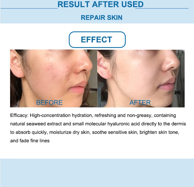 Высококонцентрированная гидратация, освежающая и нежирная, содержащая натуральный экстракт водорослей и небольшую молекулярную гиалуроновую кислоту непосредственно на дерму, быстро впитывает, увлажняет сухую кожу, успокаивает чувствительную кожу, осветляет тон кожи, И исчезают мелкие морщинки |