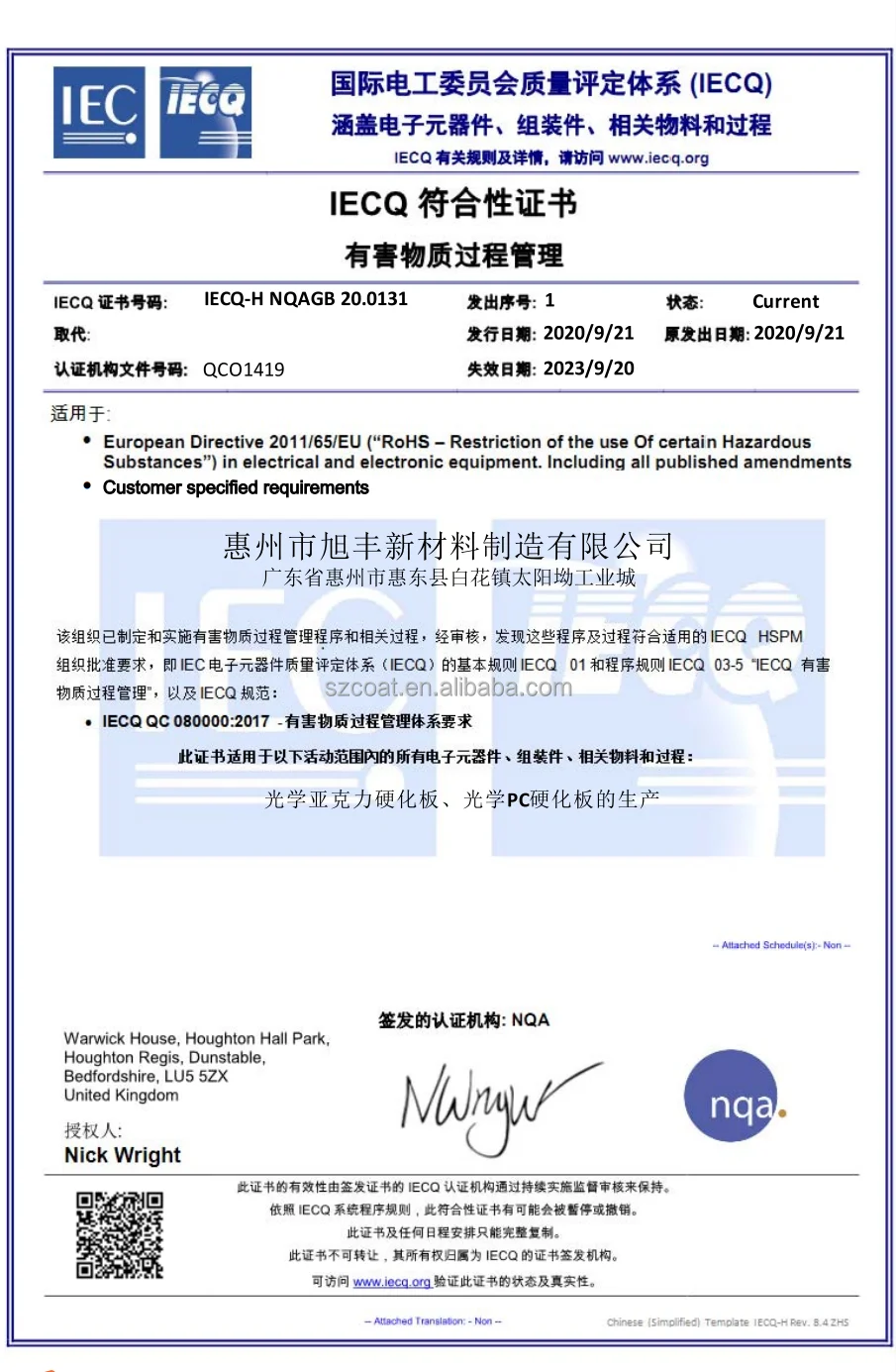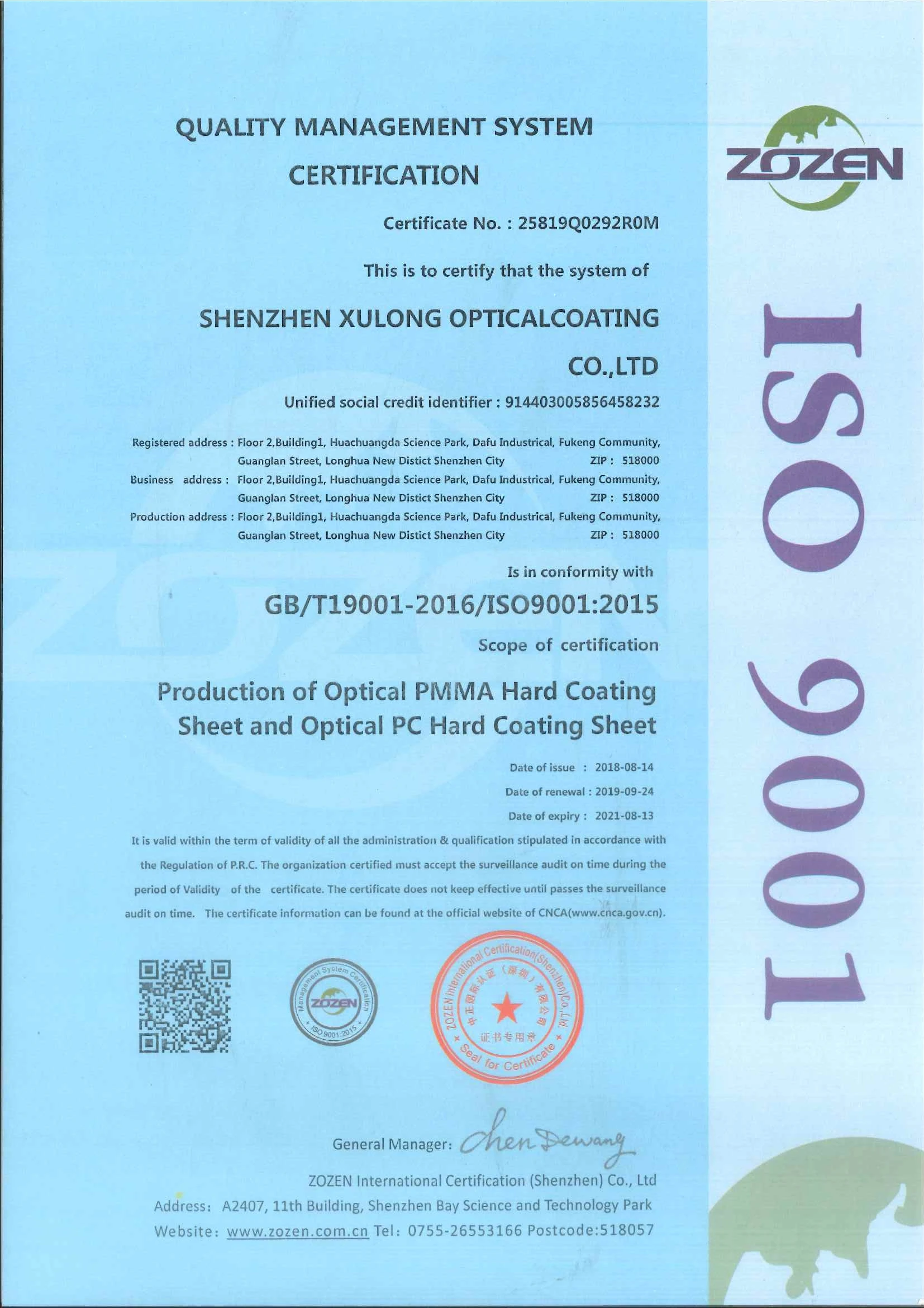 Certificate | ISO 9001; ISO 14001; QC 080000; REACH; ROHS; MSDS |