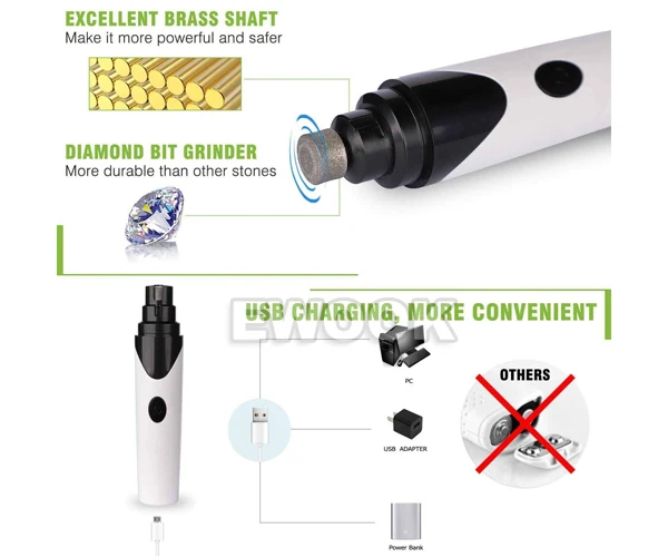 ![]() | \t\t\t \t\t\t \t\t\t - Brand New and High Quality \t\t\t \t\t\t - Pet Nail Grinder(+USB Cable) White&Black \t\t\t - Colour: White+Black \t\t\t - Adapter output: AC 100-240V 50/60Hz / USB charge: DC 5V \t\t\t - Rechargeable battery:Ni-Cd 2.4V ( 350mA x 2pcs ) \t\t\t - Charge time:2H/ Using time:180mins \t\t\t - Detchable diamond bit grinding stone \t\t\t - DC 2.4V long-time life motor \t\t\t - Little noise design, Low vibration \t\t\t - Blue light blinking when charging, stay at blue light after full charged \t\t\t - Cordless using \t\t\t - Micro USB cord , Manual \t\t\t - USB charging \t\t\t - Detachable grinding wheel \t\t\t - Low vibration and noise \t\t\t - Ergonomic handle features \t\t\t - Cordless operation \t\t\t \t\t\t \t\t\t \t\t\t \t\t\t \t\t\t \t\t\t \t\t\t \t\t\t \t\t\t \t\t\t \t\t\t \t\t\t \t\t\t \t\t\t \t\t\t \t\t\t | |||