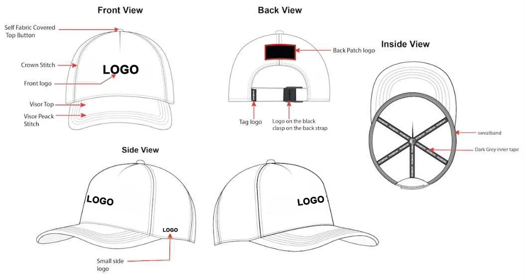 Back closure | Snap back | leather strap, adjustable clip, fastening strap or custom your design. | ||