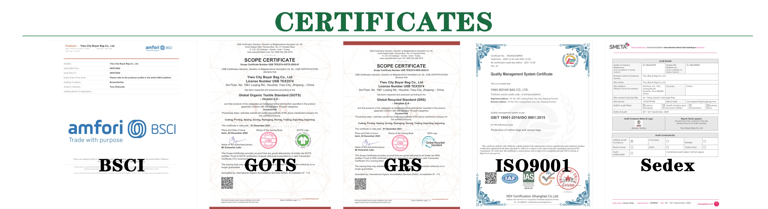 --We do Sedex/BSCI/GOTS/GRS/ISO 9001 for years.