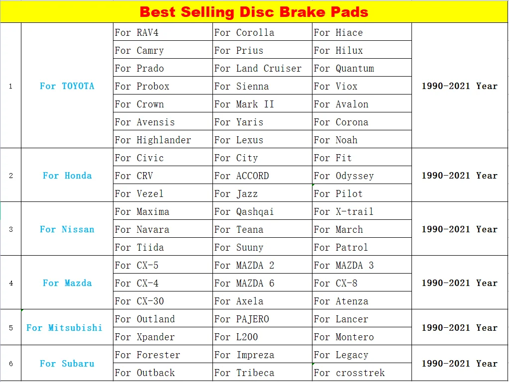Application | TATK TATK car ceramic brake pad for toyota genuine hiace 2015 2020 altezza vios rav 2009 , hilux previa probox camry 2010 brake pads |