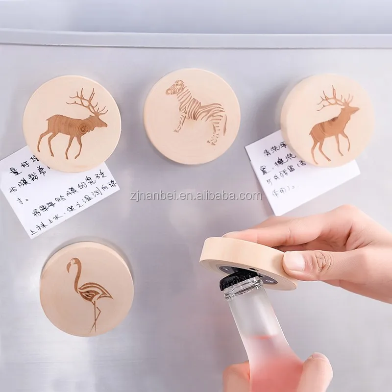 Custom logo cheap round wooden beer bottle opener fridge magnet
