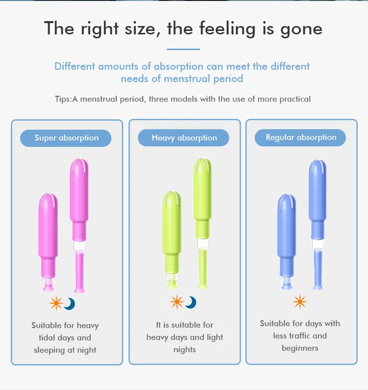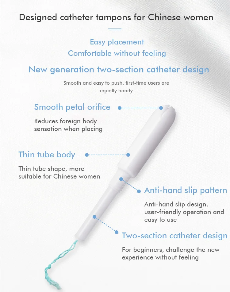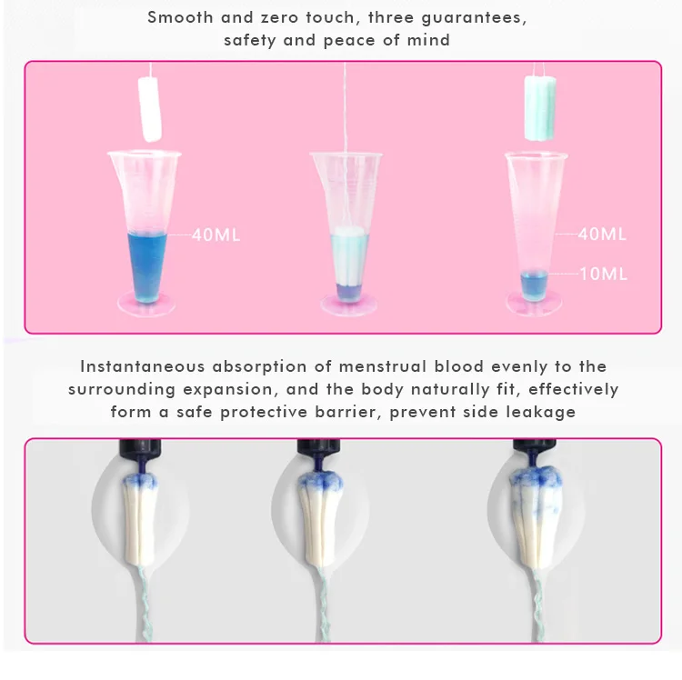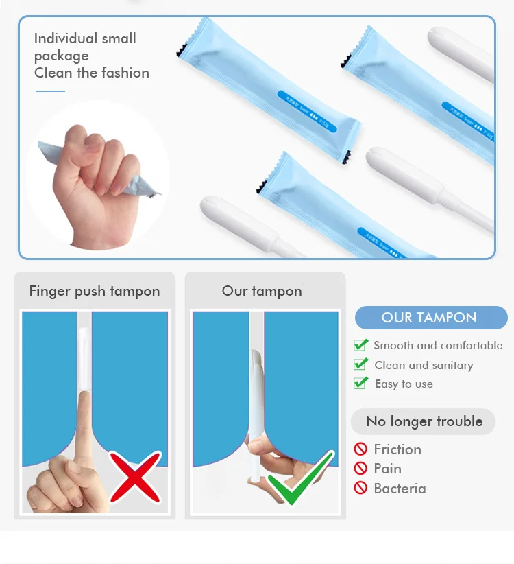 A: Tampons are healthy! Tampon placed in the body, the pricate part is more dry and breathable, no feeling of sultry, avoid problems such as moist itching, and menstrual blood and air isolation, greatly reduce the growth of bacteria, more effectively prevent the occurrence of gynecologival idseases.