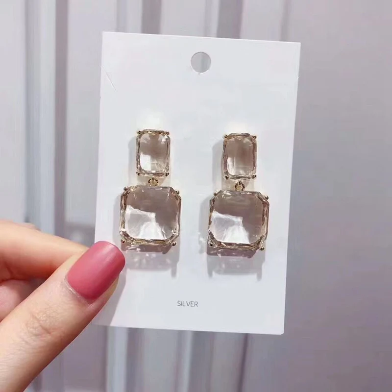 Korean New Style Luxury Elegant Shiny Square Crystal Dangle Earrings For Female Party Daily Jewelry |
