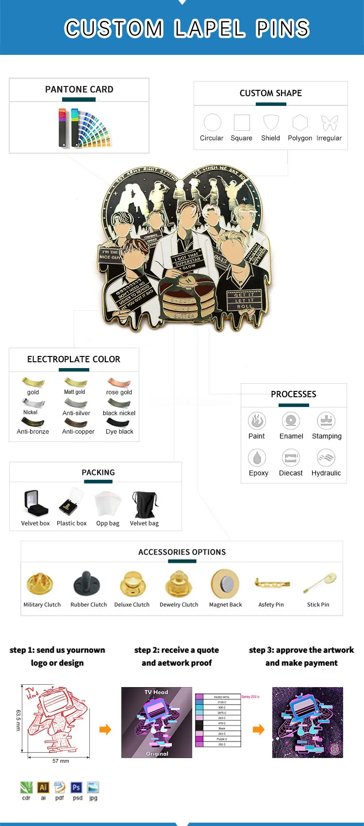 Our MOQ is 50pcs for EACH custom design. New customers can start with 10 pcs to check the quality.