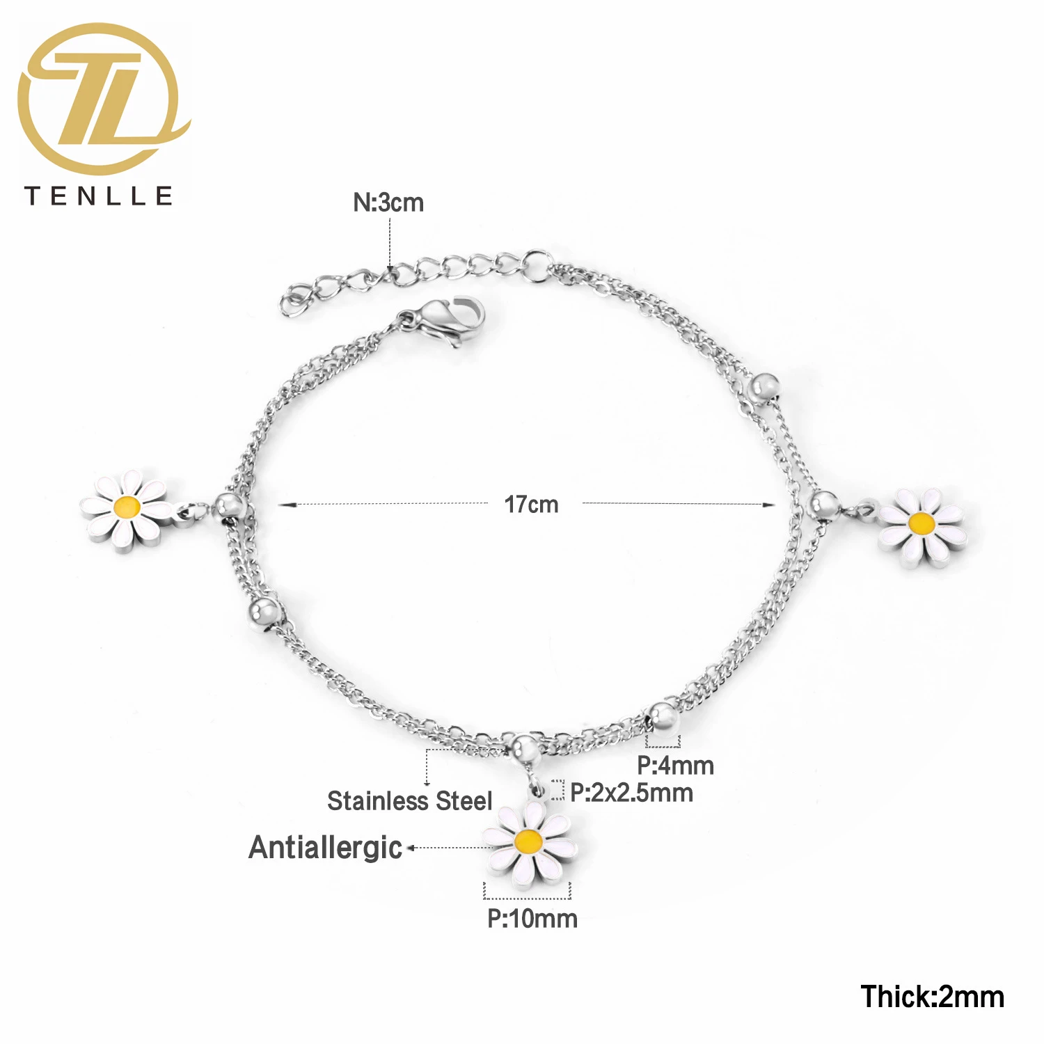 NAME | Elegant mini little Daisy sunflower stainless steel fresh female girls bracelet trendy anklet bracelets | ||||||