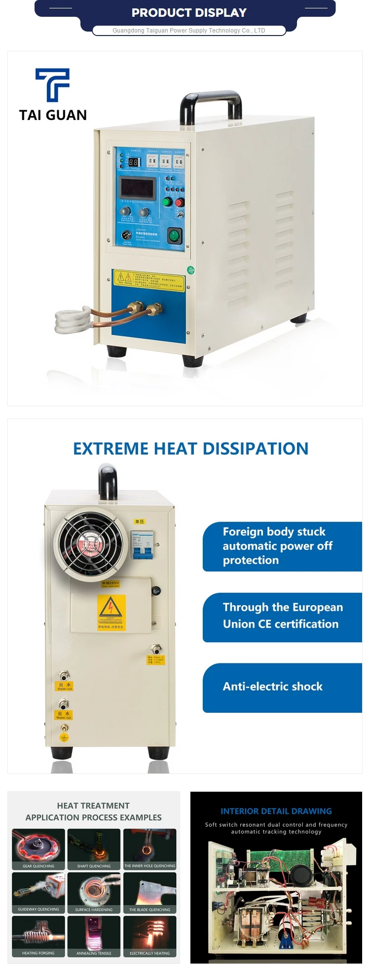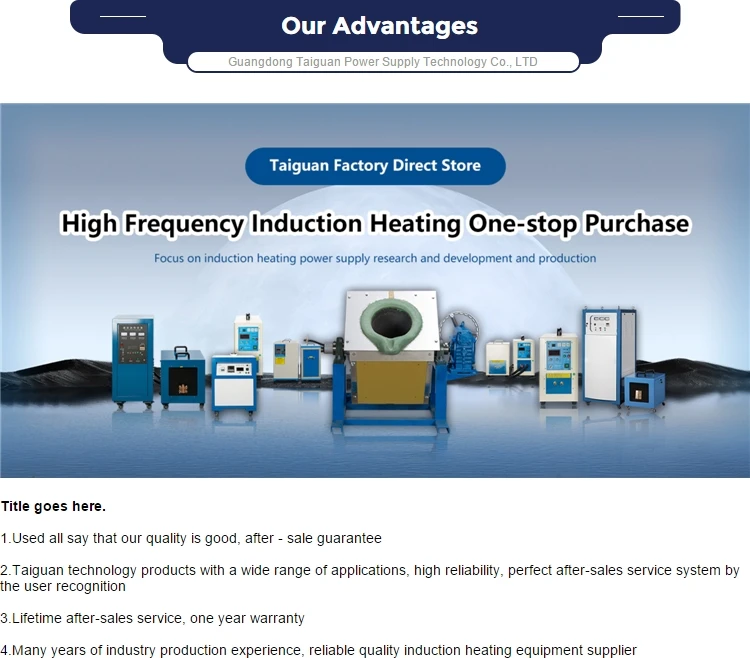 Jiangmen Taiguan Power Technology Co., Ltd. стремится к исследованиям и разработкам, производству и продаже твердотельного индукционного нагревательного оборудования по всей стране. У нас есть серия супер аудио, средней частоты, высокой частоты и специального оборудования с мощностью от 3 кВт до 300 кВт.