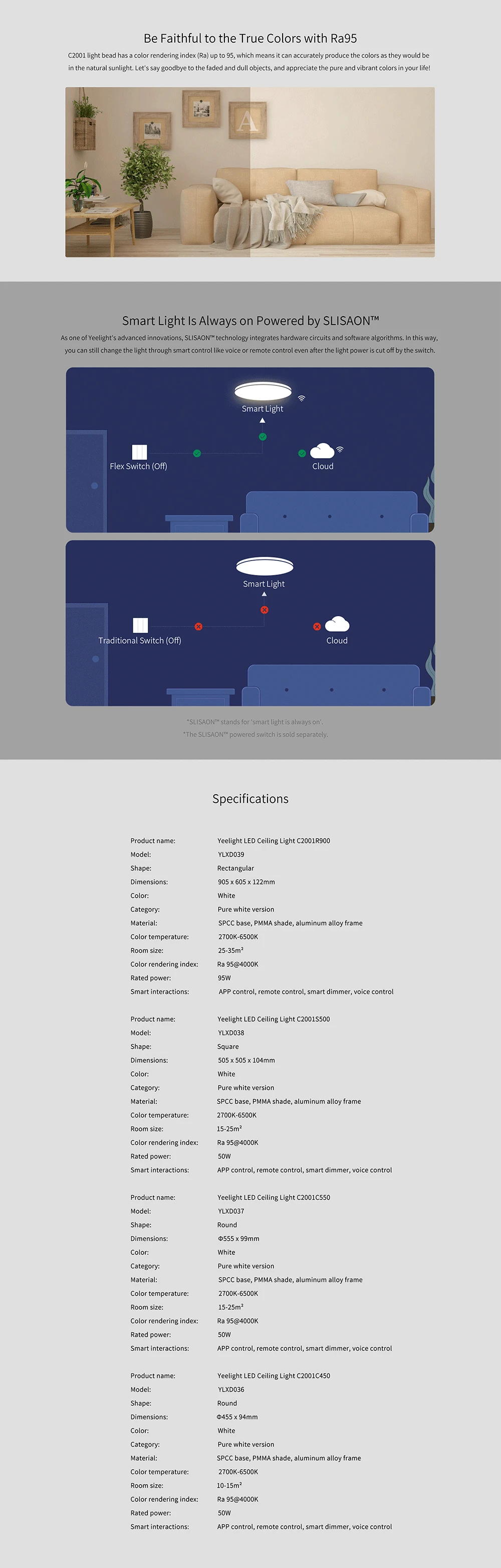 Потолочный светильник YEELIGHT Xiaomi C2001S500 гарантия качества ультра-форма голени работает с Google Home Amazon Alex для