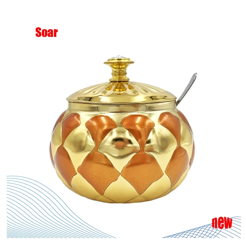 Arabic turkish colored seasoning sugar pot with spoon and lid stainless steel sugar bowl