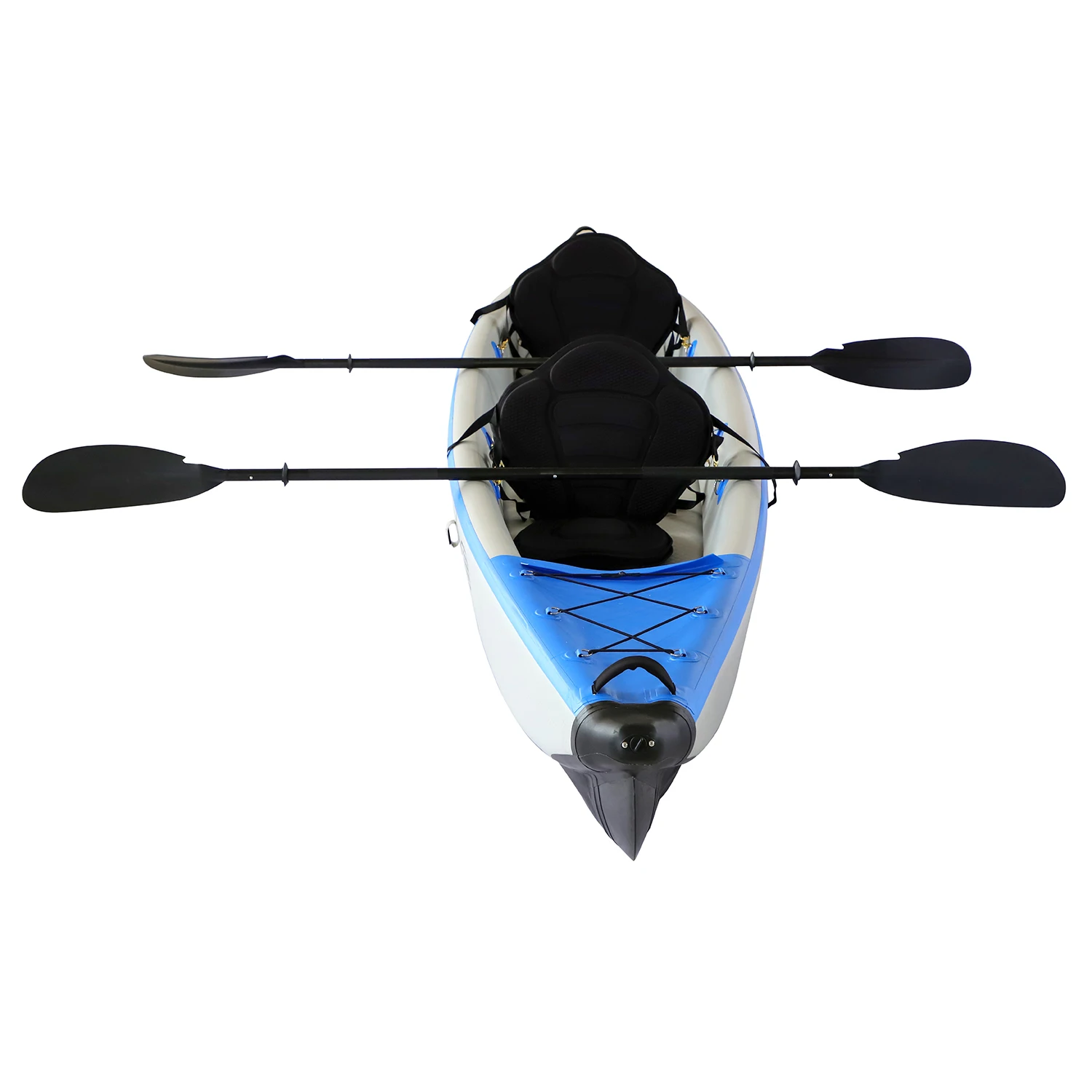 Full Accessories with kayak paddles, dual action air pump, backseat, bag, foot rest and reapir kit, removable skeg.