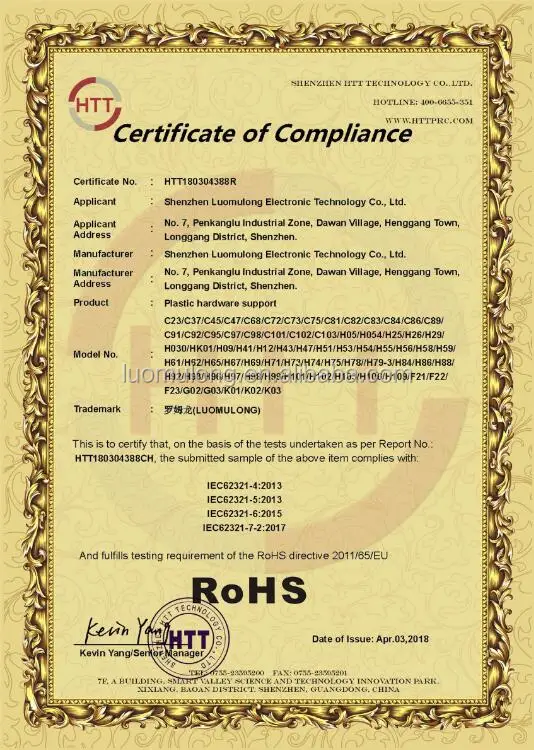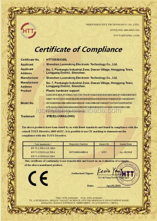 To meet the customers requirement and conform to the laws and regulations of different countries,Most of our products have got CE,ROHS,REACH and CP 65(CALIFORNIA PROP 65)approvals.