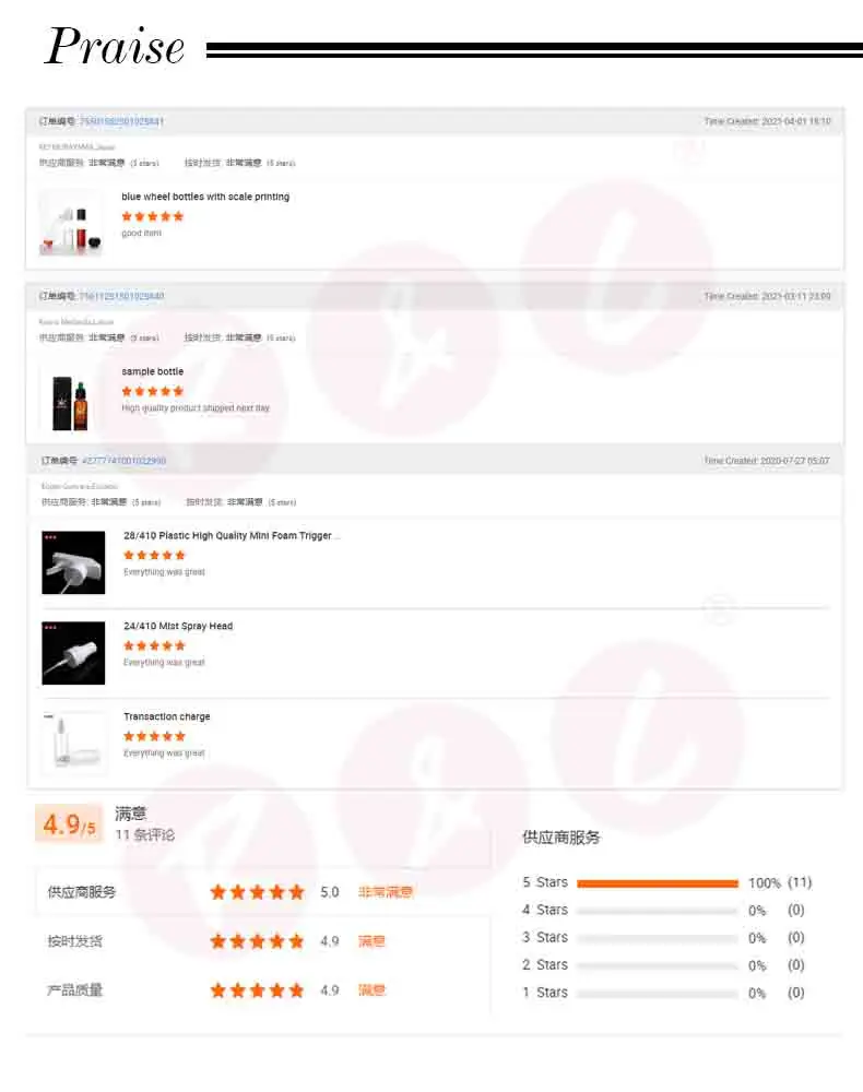 We are a qualified bottle supplier with good reputation and rich experience in packing industry for over 12 years. So far, we have 14 production lines, and 12 workshops. We have ISO8317, CFR,GCC,SGS,TUV certificates