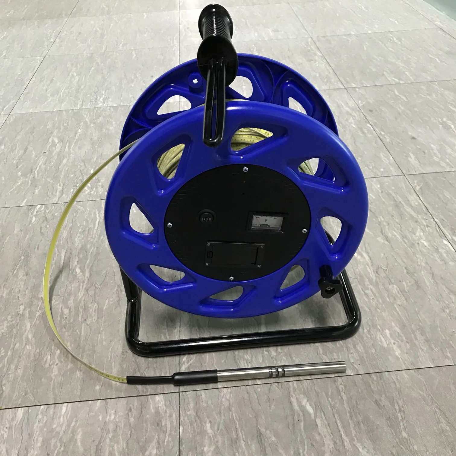 In measuring, make the cable reel rotate and push the power button,put the detect head in the water pipe, put the ruler cable in hand and make it drop slowly. When the detect head contact point contact water, the receiver system buzzer will sound. Then you can read the data of the ruler cable and can know the water level.(if the surrounding voice is loudly, maybe you can hear buzzer,so you can observe the indicate light and voltage meter)