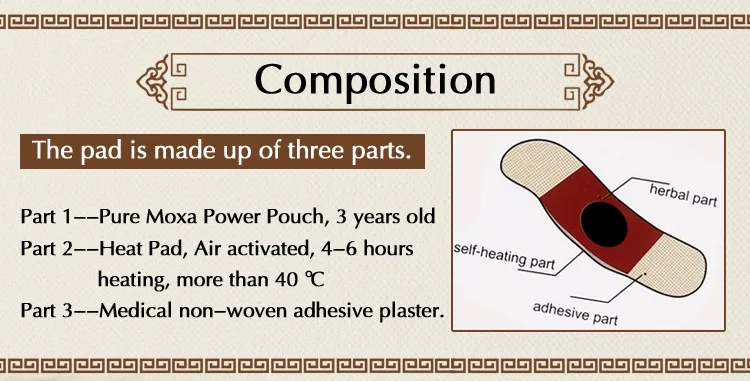 Instruction | 1.Take out and ignite the moxibustion, aiming acupoints or part of painful. 2.Remove the release paper and apply the paste onto affected area. |