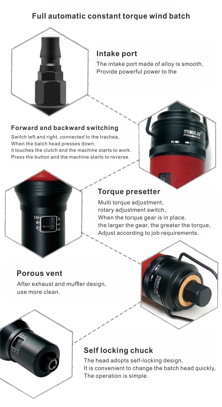 TUNG LIH Hand held down pressure industrial pneumatic screwdriver torque preset automatic
