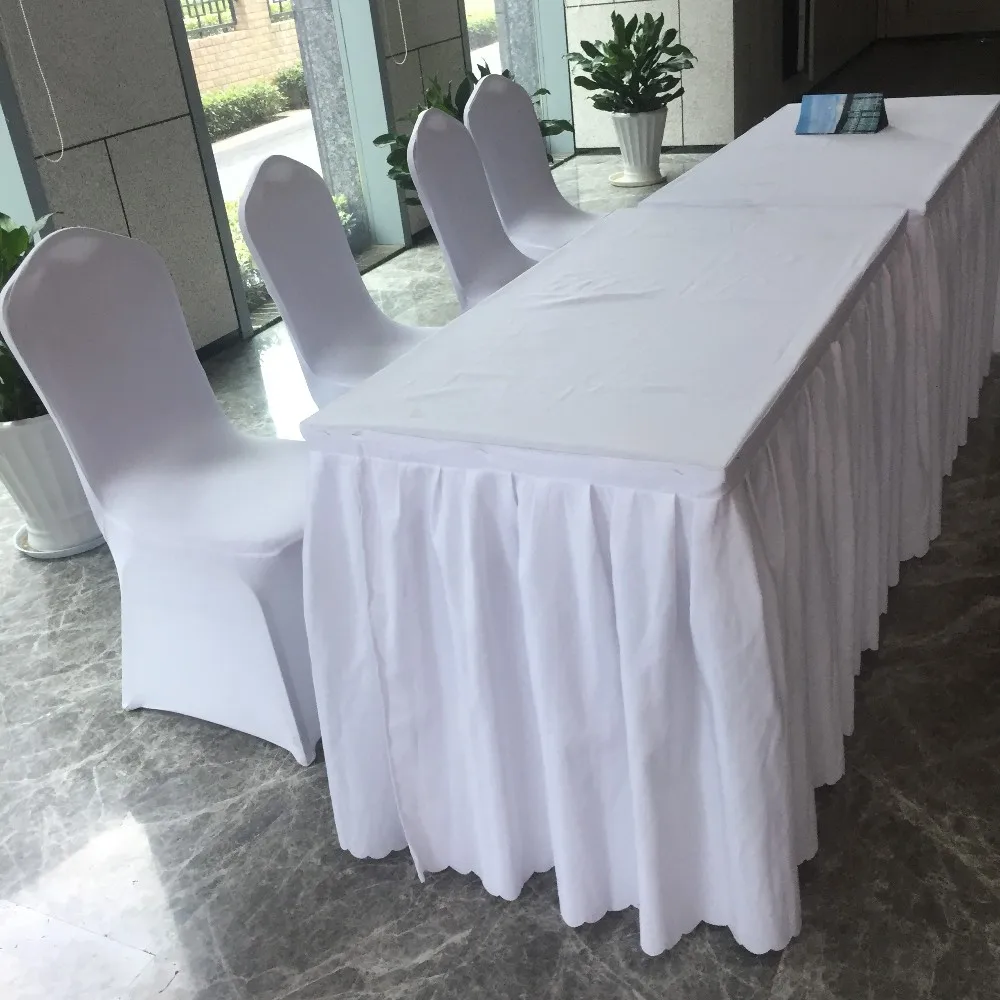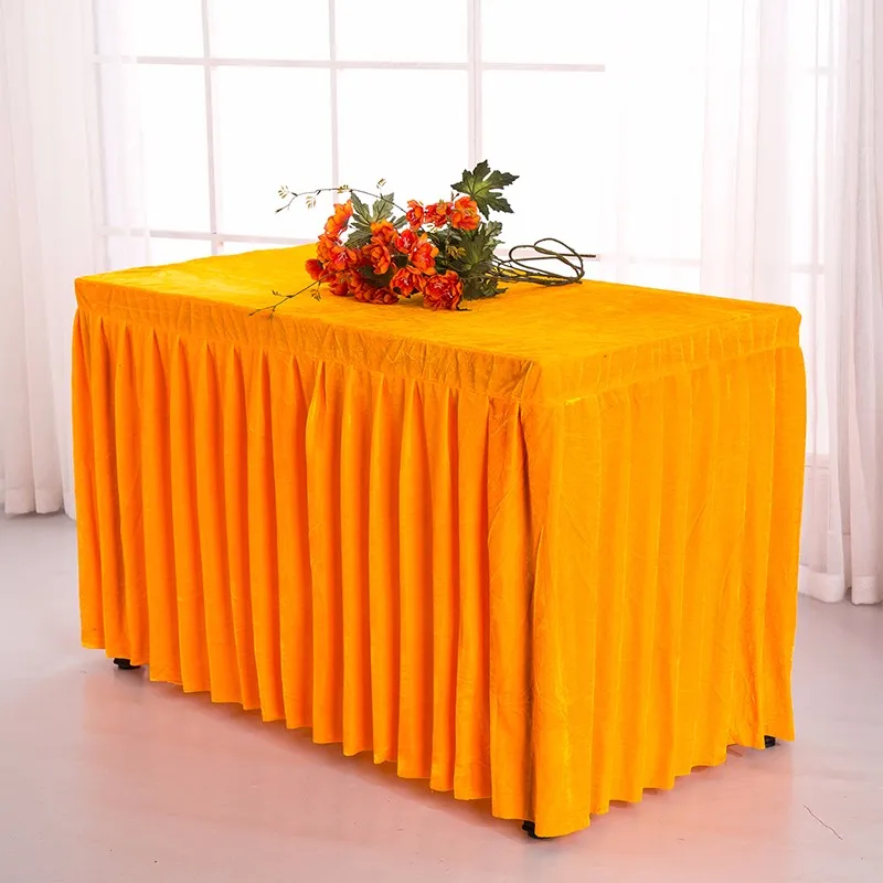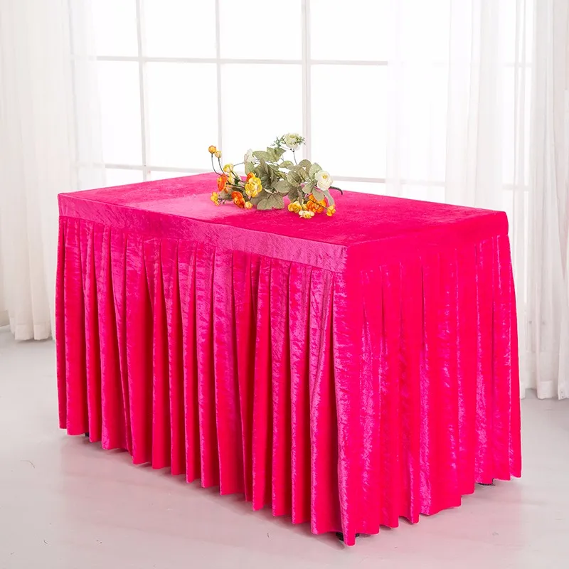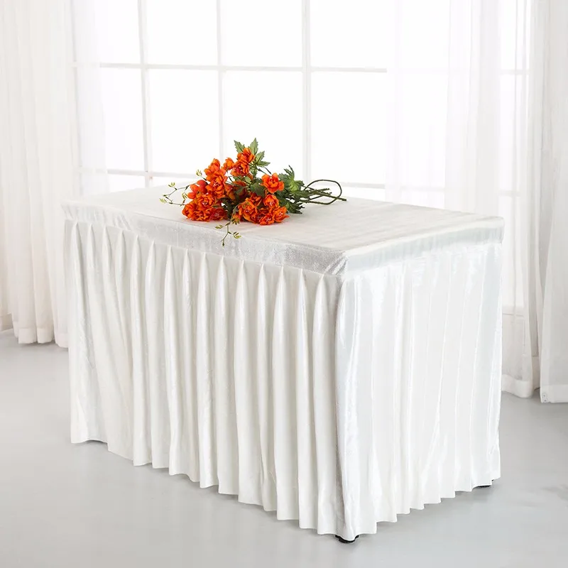 Factory white pleated wedding banquet sqaure velvet table skirt