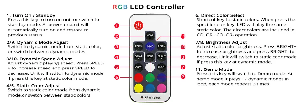 You will be given a 16 Keys LED Remote Controller (see below) to customize the colors of the backlight. With the remote controller, you will have a variety of light setting which include to power on or off lights, pause or play, dim or change speed of lights and also to create of colors.The Remote Controller require a CR2025 battery to function.(Battery not included due to airline security check) Also, its energy efficient LED lights has a long lasting lifetime of more than 50,000 hours. It is perfect for a wall decoration and also great as gift.The 5V adapter will be also sent together according to your shipping address.