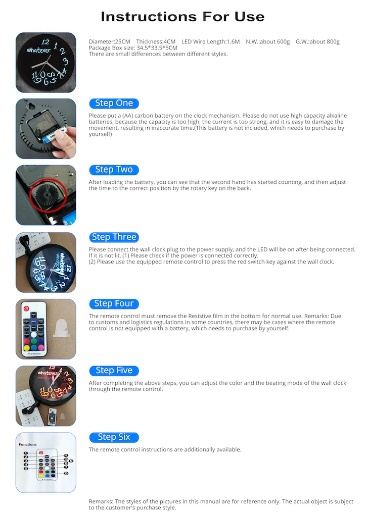 The Overall diameter of the LED Lighted Clock is 10 inch/ 25cm with a frame made of elegant black plastic with Led component inside. The source of the light is LED light, which is bright & energy saving, lifespan is more than 100,000 hours (around 10 years if you keep turning it on)