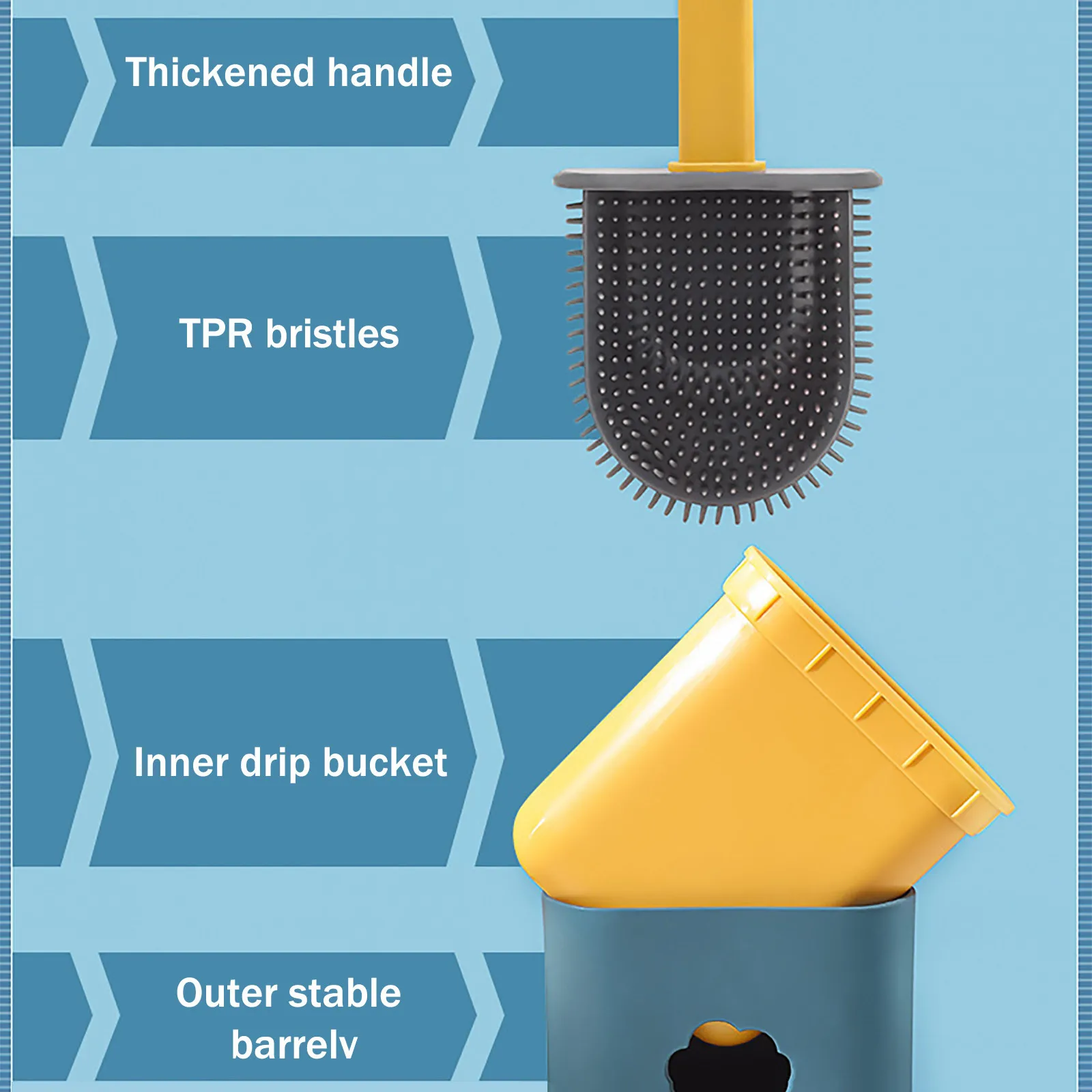 1. Toilet brush set: Silicone toilet brushes made of high quality ABS + silicone brush head, The anti-adhesive coating, no dirt can attach to the bristles and thus ensures a germ-free zone.