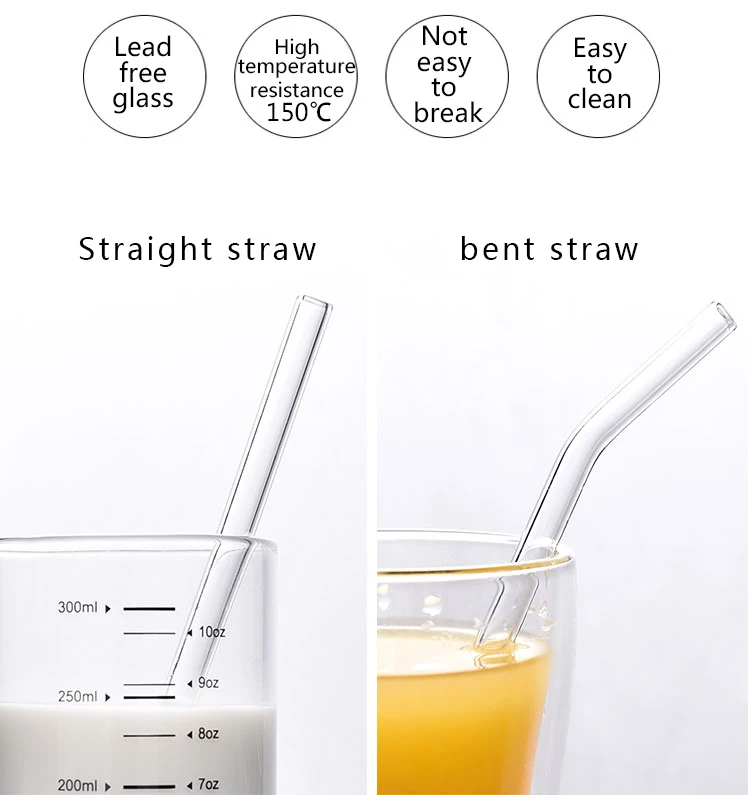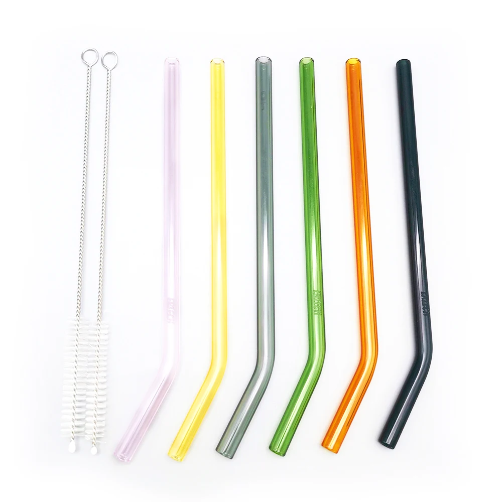 Glass straw | Borosilicate | 8*1.5*130/150/180/200/230/250mm 10*1.5*130*150*180*200*230*250mm 12*2*130/150/180/200/230/250mm | Transparent,Yellow, Blue,Green,White jade, Pink,Grey,Black, Amber,Purple | Straight and bent |