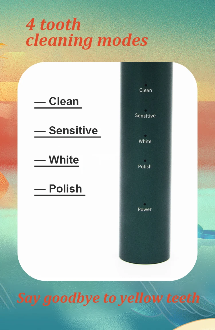 Cleaning, Whitening, Polish, Sensitive,and you can choose the mode according to your preference. Press the power button to switch the brushing mode one by one. In addition, the working mode is displayed by light, very convenient