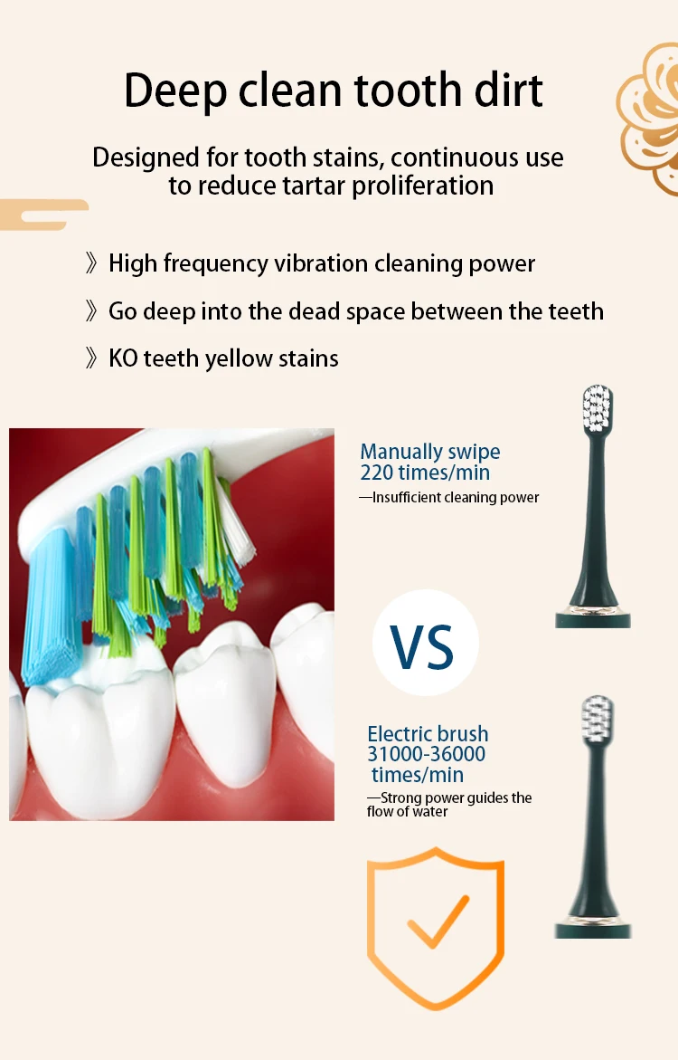 The electric toothbrush can be shi'y in the shower because the waterproof of the device meets the ipx7 standard. Finally, for any defects or problems you may encounter, we provide you with a one-year warranty. It can be a choice for Christmas, new year and Valentine's Day gifts