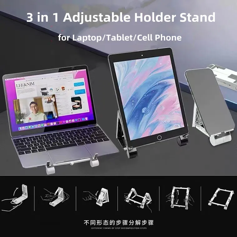 Portable adjustable foldable 3 in 1 holder stand for Laptop/Tablet/Cell Phone