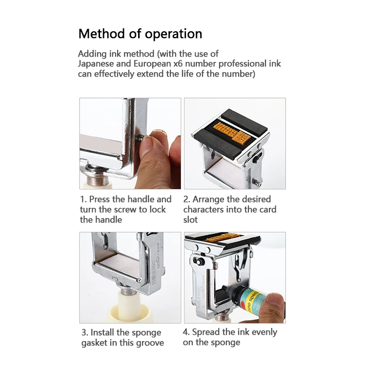 This is an ink coder. The ink is a quick-drying type. When the ink is applied to the surface of the sea, the word on the card slot will be reversed after the word is reversed. (The ink is replaced after the ink is replaced. Drops quickly) The method of lasting ink. Choose the words you need. In the new sponge, evenly paint the ink, and continue printing, you can make the ink work longer, because the ink is quick-drying, it will not continue like a seal, please forgive me!