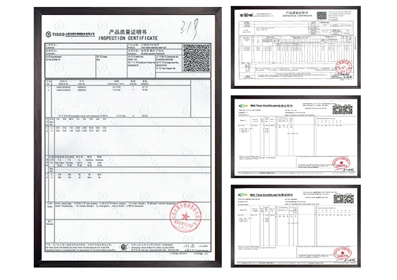 Material Grade | Mainly201, 202, 304, 304L, 304H, 316, 316L,316Ti,2205, 330, 630, 660, 409L, 321, 310S, 410, 416, 410S, 430, 347H, 2Cr13, 3Cr13 etc 300series:301,302,303,304,304L,309,309s,310,310S,316,316L,316Ti,317L,321,347 200series:201,202,202cu,204 400series:409,409L,410,420,430,431,439,440,441,444 Others:2205,2507,2906,330,660,630,631,17-4ph,17-7ph, S318039 904L,etc Duplex stainless steel:S22053,S25073,S22253,S31803,S32205,S32304 Special Stainless Steel:904L,347/347H,317/317L,316Ti,254Mo | |