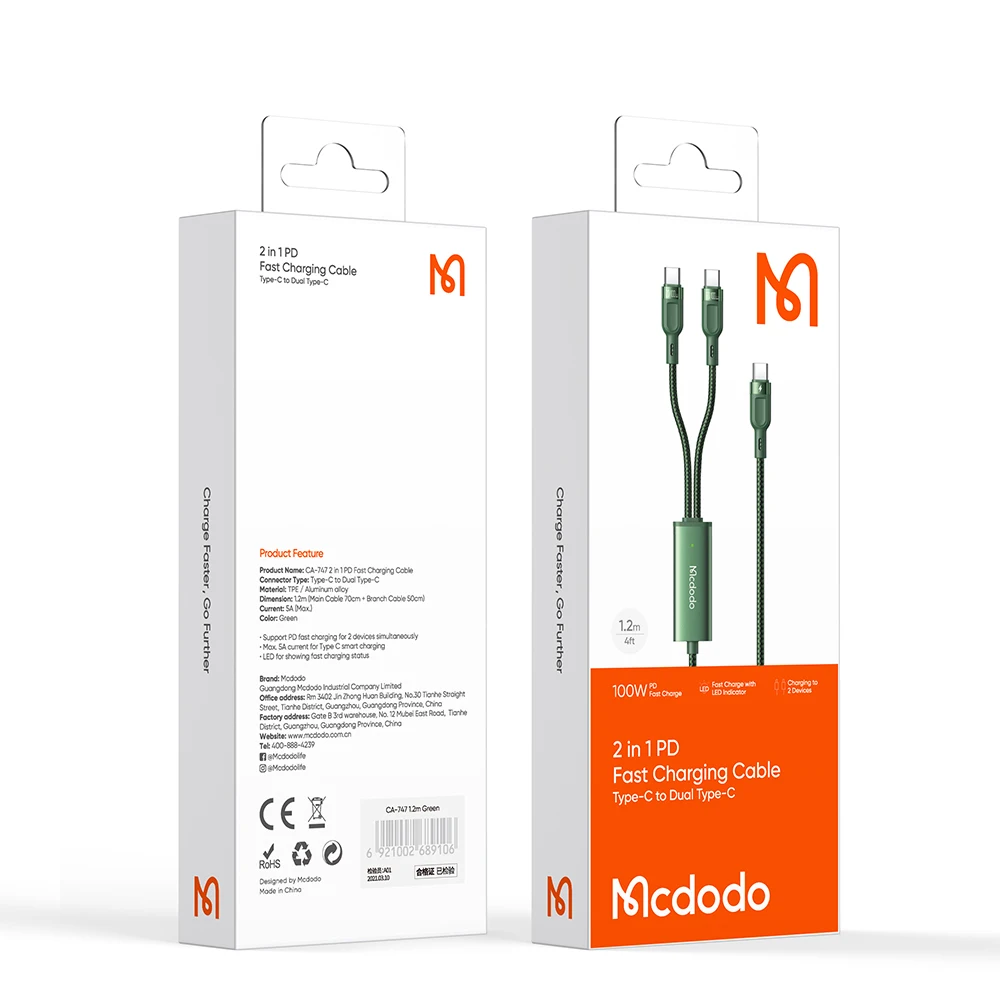 Green 100W 2 in 1 Type-c to Dual Type-c Cable With E-mark