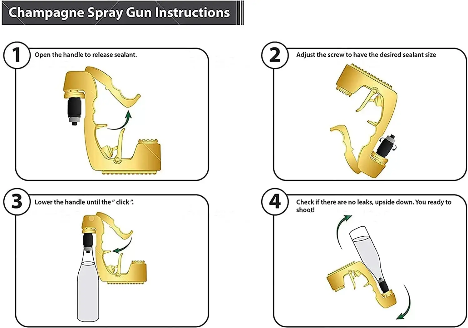 ♡✔ * ALLOY MATERIAL: The whole champagne gun is made of high-quality alloy materials, which is strong and durable. It will bring you unique colors in colorful receptions and gatherings to ensure the best experience.