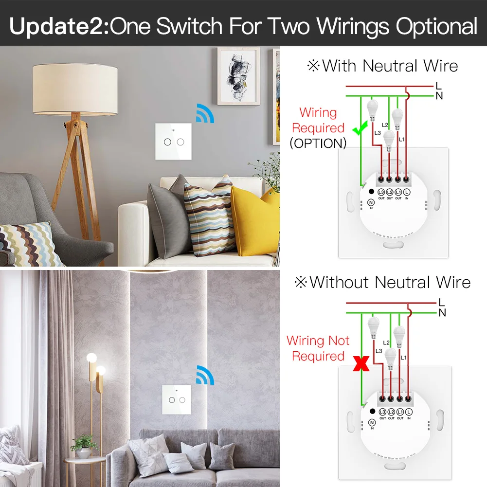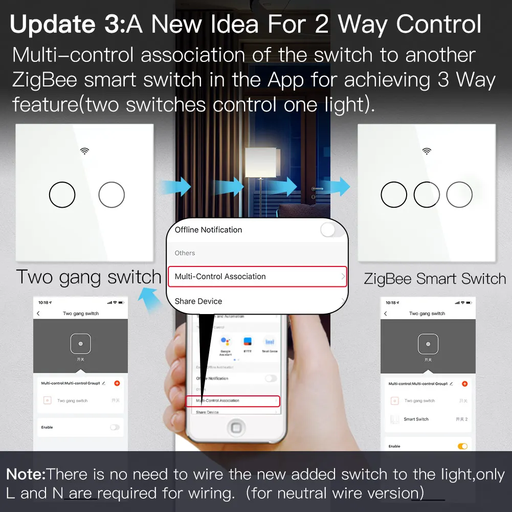 1. Новый дизайн с нейтральным проводом и одиночным живым проводом, входящим в одну панель переключателя; Не требуется нейтральная проводка для одной версии провода; Проводите нейтральный провод на переключателе при необходимости; Конденсатор не нужен Для новой версии обновления для лучшего пользовательского опыта без шума от электрического тока; Tuya Zigbee hub необходим для нормального использования этого переключателя, отличающегося такой же совместимостью с умными устройствами tuya, чем с любыми другими Концентраторы.