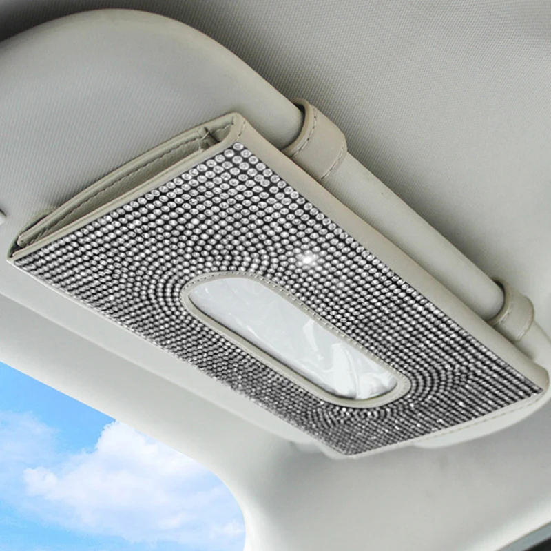 Product Name | Car Universal Rhinestone Pu leather Sun Visor Tissue Box Cover Napkin Holders Crystal Storage Paper Towels Box |