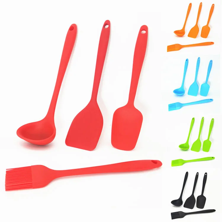 4 шт. силиконовые малые кухонные принадлежности ложка с деревянной ручкой Кухня Силиконовые Шпатель скребок комплект силиконовый кухонный набор инструментов для приготовления