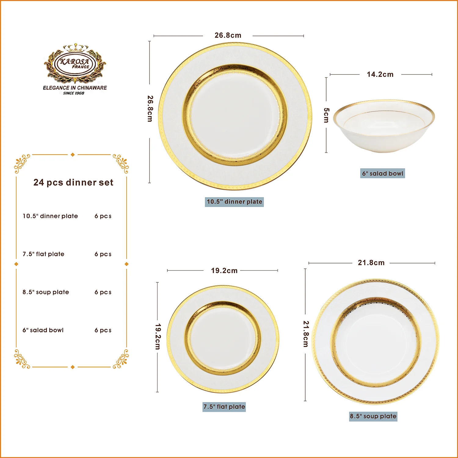 Brand Name : | KAROSA | Tech.: | Embossed gold | ||