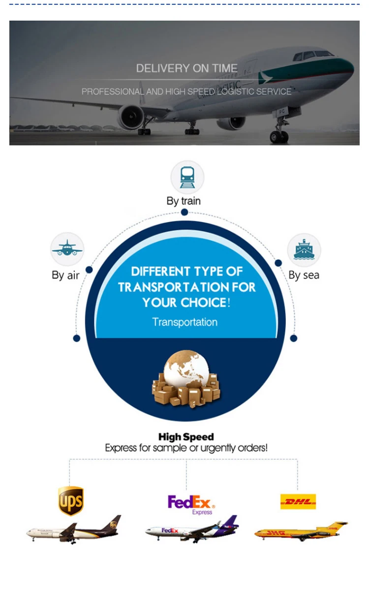 -To ensure you receive goods quickly,we will not choose cheaper sea shipping and method without any logistics information.We will choose DEL,TNT,FeDex,UPS,SF_express.Also we can choose other shipping method as customer's request.