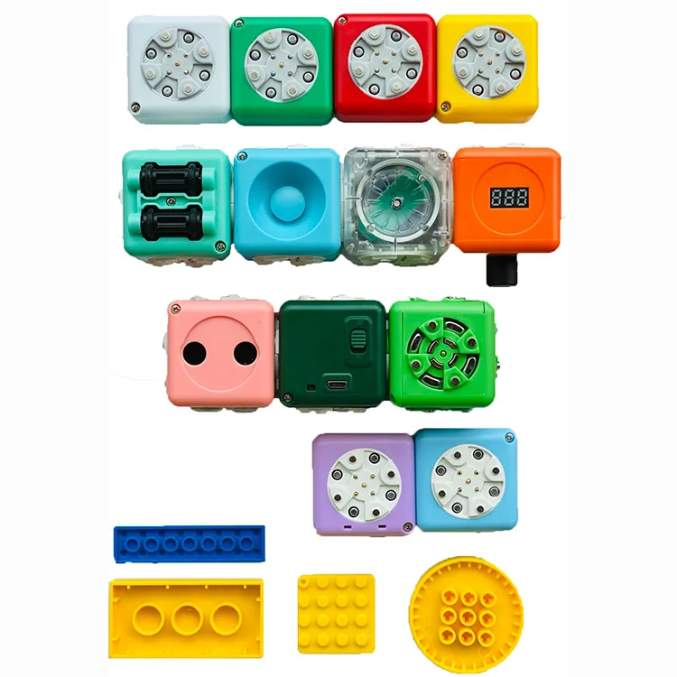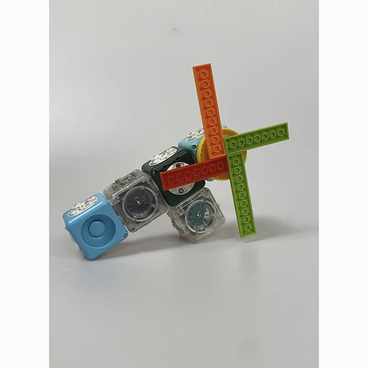 С помощью этого набора дети могут создавать роботы, которые могут двигаться, излучать свет и издавать звук. С взаимодействиеПрограммист блоки(Программирование и действие патчи), сила, шаблон и времяСуперразрушитель типа "палач" блокS может быть запрограммирован, и состояние триггера может быть запрограммировано (в безэкранном режиме!) . Добавление сенсорных блоков добавит больше удовольствия роботу, потому что робот будет отвечать на экологические изменения, такие как температура, яркость и объекты, появляющиеся на близком расстоянии.