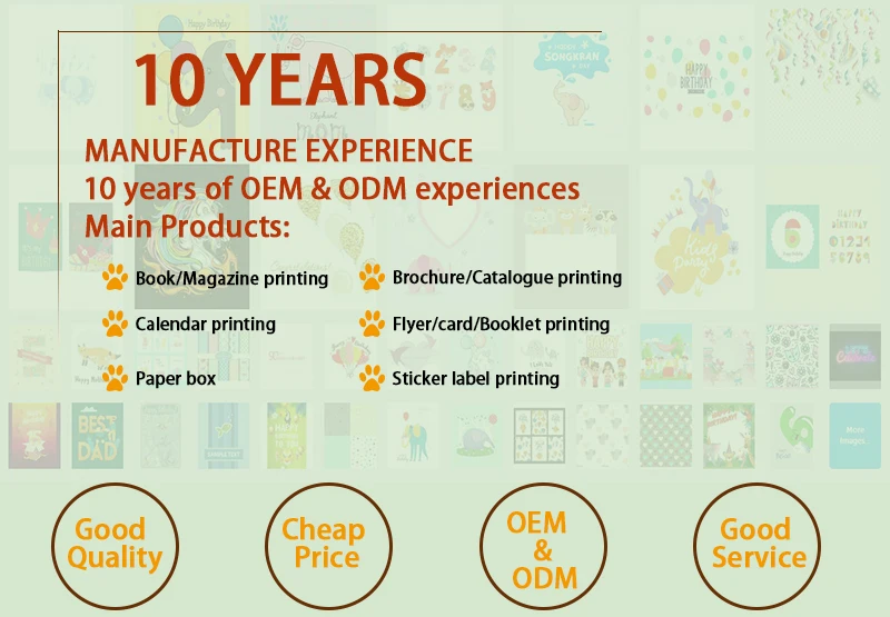 4 color printing(CMYK printing) or Pantone color or varnish printing; B/W printing