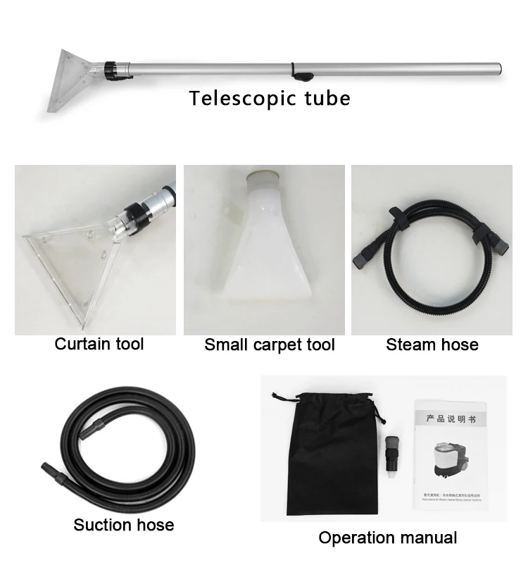 It is suitable for the cleaning needs of sofas, carpets, curtains, mattresses, car interior seats, etc. The steam version integrates high temperature sterilization, cleaning and decontamination, and the cold water spray pump version is equipped with a high-pressure and high-flow cleaning pump, which can wash away dirt and quickly absorb dry. Efficient and simple, light and flexible, simple to operate, and effective in cleaning.