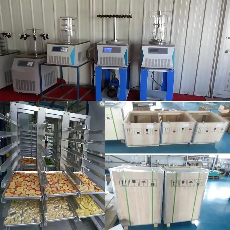 Our vacuum freeze dryer is suitable for freeze drying experiment in laboratory, a small amount production, or pilot scale. This series is our patent products. This series of dryers have electric heating shelf. Freezing and drying process are finished in the same place. It changes traditional complicated operation and prevents the product from pollution.