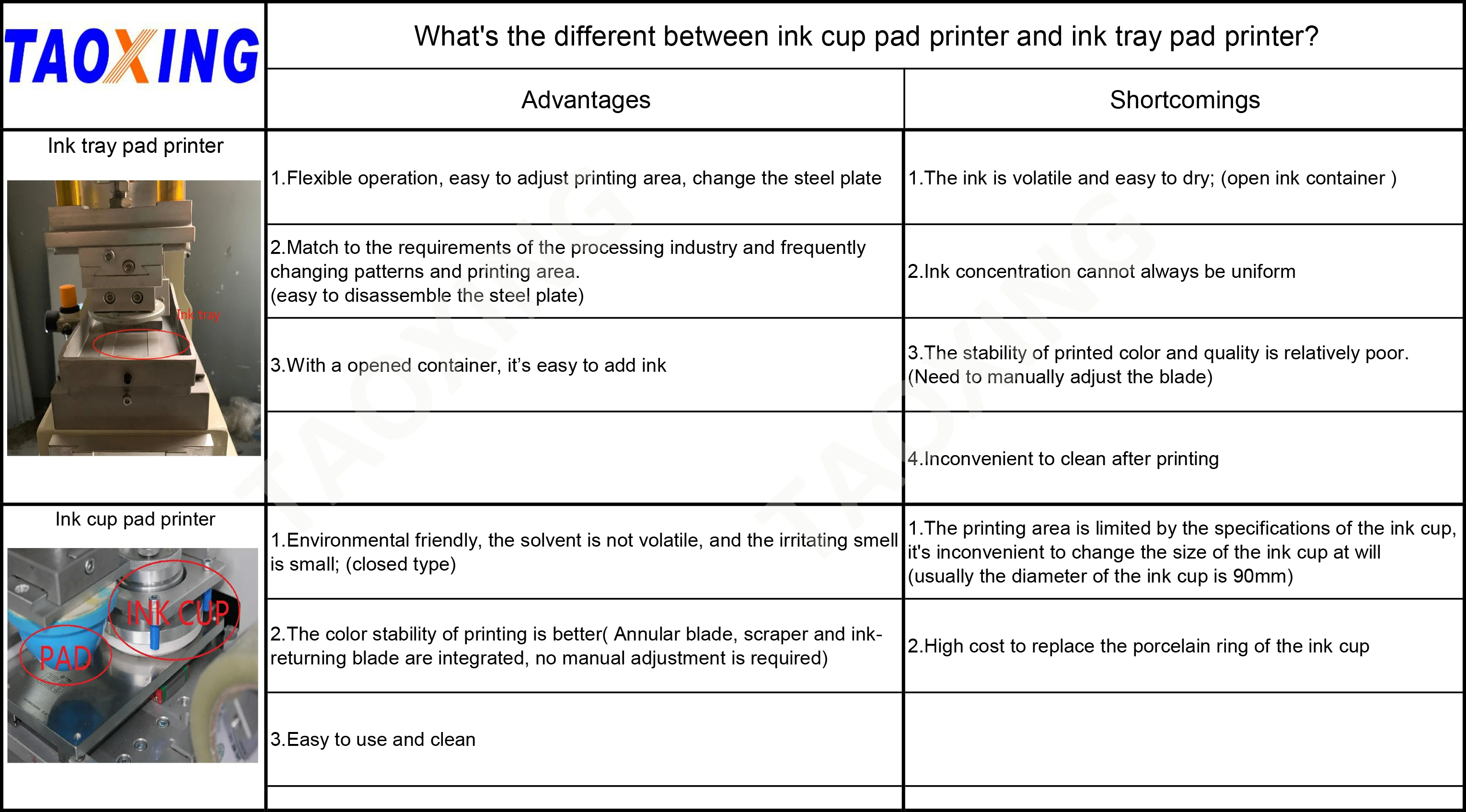 Specification for TXD-225-90 sealed ink cup pad printer | ||||||