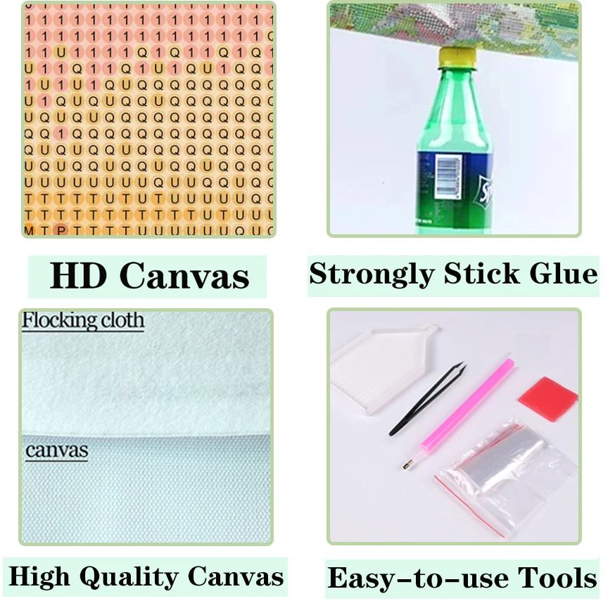 Acrylic diamonds + canvas printing + tools
